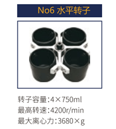 No6 | 水平轉(zhuǎn)子 | 4x750ml | 4200 r/min | 3680xg |